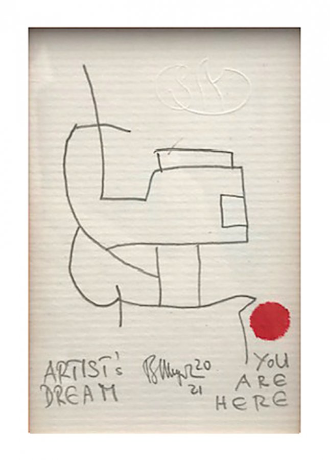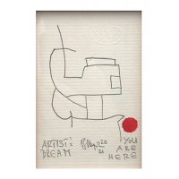 Die erste Arbeit dieser Serie stammt von 1987. Zu sehen ist auf dem Werk nichts anderes als ein roter Punkt. Er symbolisiert, dass die Arbeit verkauft ist. Titel und Punkt sind ein minimalistisches Konzept, ein Zeichen, es ist eine Projektion Dritter, auf das Leben und die Arbeit des Künstler. Der Titel unterstellt dem Künstler, dass der Verkauf seines Werkens sein Wunschtraum ist. Ausser acht lassend, dass der Künstler, sich um seiner Existenz willen von seinem Werk trennen muss. Eine Trennung vom Unikat ist eher schmerzhaft als genussvoll. Das Monetäre mag die Trennung versüßen, aber das Werk verschwindet aus dem Leben des Künstlers. Mit der Zeit wurden die bis dato leere Flächen der ARTIST’S DREAM Werke mit Linien versehen, Lebenslinien, imaginäre Straßenzüge oder reale Stadtpläne, symbolisch für die Umrisse eines Staates oder die Gitter vor einer Fensteröffnung.