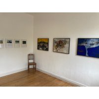 Später, nach zwei weiteren Bildern „Eis bricht, ich sinke“ und „Fluchten“ habe ich zu einer Bildsprache gefunden, die viel von Feuer und Brennen erzählt. Und im Nachhinein konnte ich hinter diesen ersten Bildern erkennen, dass es darum ging, das Absurde, das Schreckliche zu fassen, war es zunächst doch nur das ganz abstrakte Gefühl von Schrecken, da ich die Wirklichkeit des Krieges nur über mediale Hilfsmittel wahr nehme. Das bombardierte Theater mit 600 Schutzsuchenden, das restlos zerstörte Stahlwerk in Mariupol und weitere Ungeheuerlichkeiten wie in Butscha und die scheinbar rein zufällige Ermordung so vieler Menschen, an so vielen Orten; wie kann ich mich dem stellen? Wie ist es möglich, eine solche Wirklichkeit auf Leinwänden von 80 x 60 cm real werden zu lassen? Wie kann ich die Distanz beschreiben, zwischen dem, was ich medial wahrnehme und dem was dort real passiert? Nicht zuletzt mich dem stellen, was ich mich traue, auf die Leinwand zu bringen. Es ist sehr schwer den Schrecken und das Absurde in mir entstehen zu lassen und dann auch auszuhalten. Es schmerzt, an das Absurde in der Wirklichkeit zu denken, denn das Absurde geht gegen die menschliche Vernunft.“