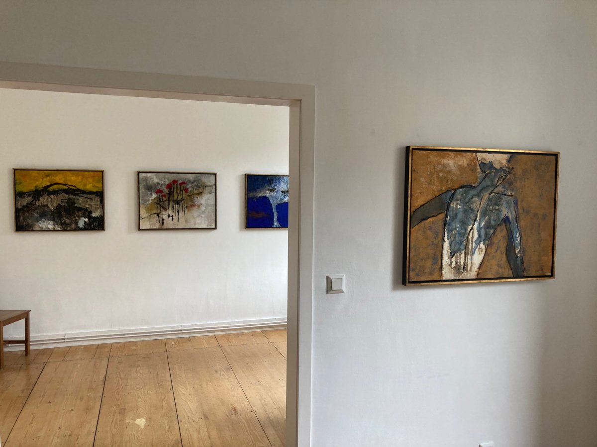 „Im Frühjahr 2022 habe ich die „Blumen des Bösen“ gemalt, weißer Mohn auf blutrotem Hintergrund. Das war ein bisschen wie eine Eruption nach einer längeren Malpause, eindeutig verursacht durch den Krieg in der Ukraine. Eine große mentale, intellektuelle und politische Verunsicherung und Unruhe hatten mich eine ganze Weile lahmgelegt. Lange war mir nicht klar, wo heraus dieses Unvermögen resultierte.