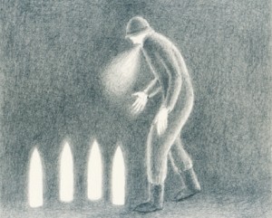 Mauro Lovi sceglie il racconto minimo, e nella sua pittura si ritrova molta la letteratura. Anche qui si tratta di narrazione sussurrata, storie che impongono silenzi tutt‘ intorno. Semplici ma epici, segni e racconti che non si perdono in chiacchiere e vanno diritti al cuore, alla vista, alle orecchie, o in una ricezione sinestetica del messaggio. (Paola Nicita)